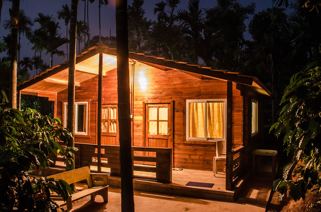 A cozy wooden retreat surrounded by coffee plantations, perfect for a peaceful nature stay.